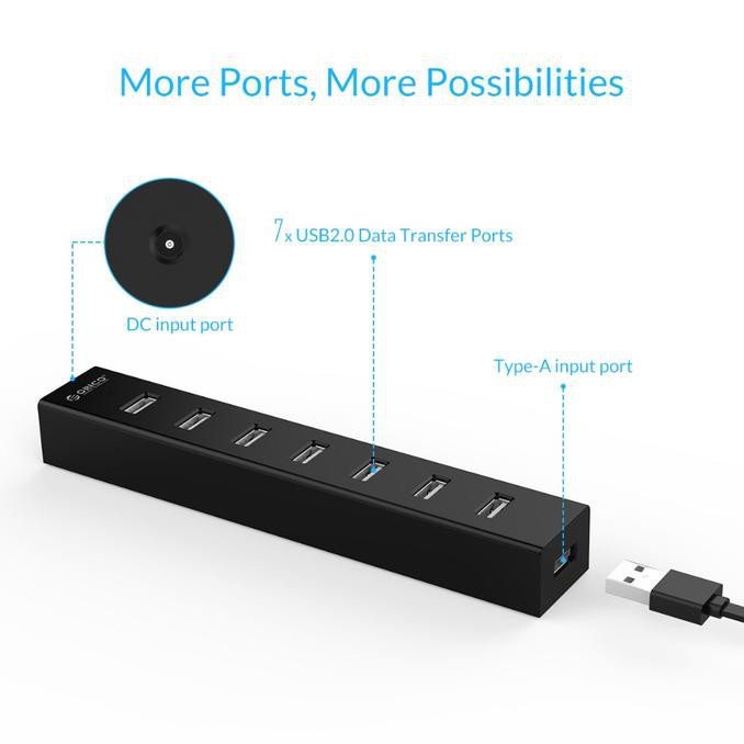 Bộ chia USB Hub 7 cổng USB 3.0 ORICO H7013-U3-AD-BK- Đầu vào (input): Cáp 1m USB 3.0