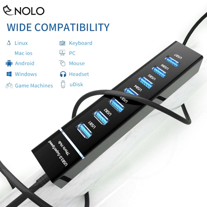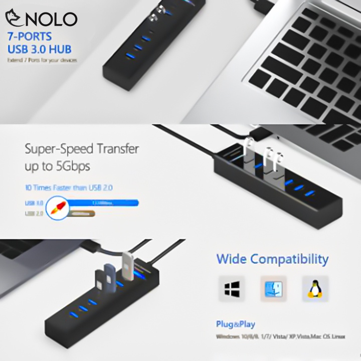 Bộ Chia Cổng USB Hub USB 7 Port Model M3 Tốc Độ Cao 3.0 Tương Thích Hệ Điều Hành Windows Mac Linux Và Máy Game PSGiới thiệu: