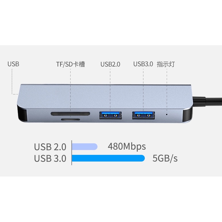 Bộ Chia USB - Hub USB to USB/ SD/ 3.0 5 in 1Chất liệu sản phẩm : hợp Kim