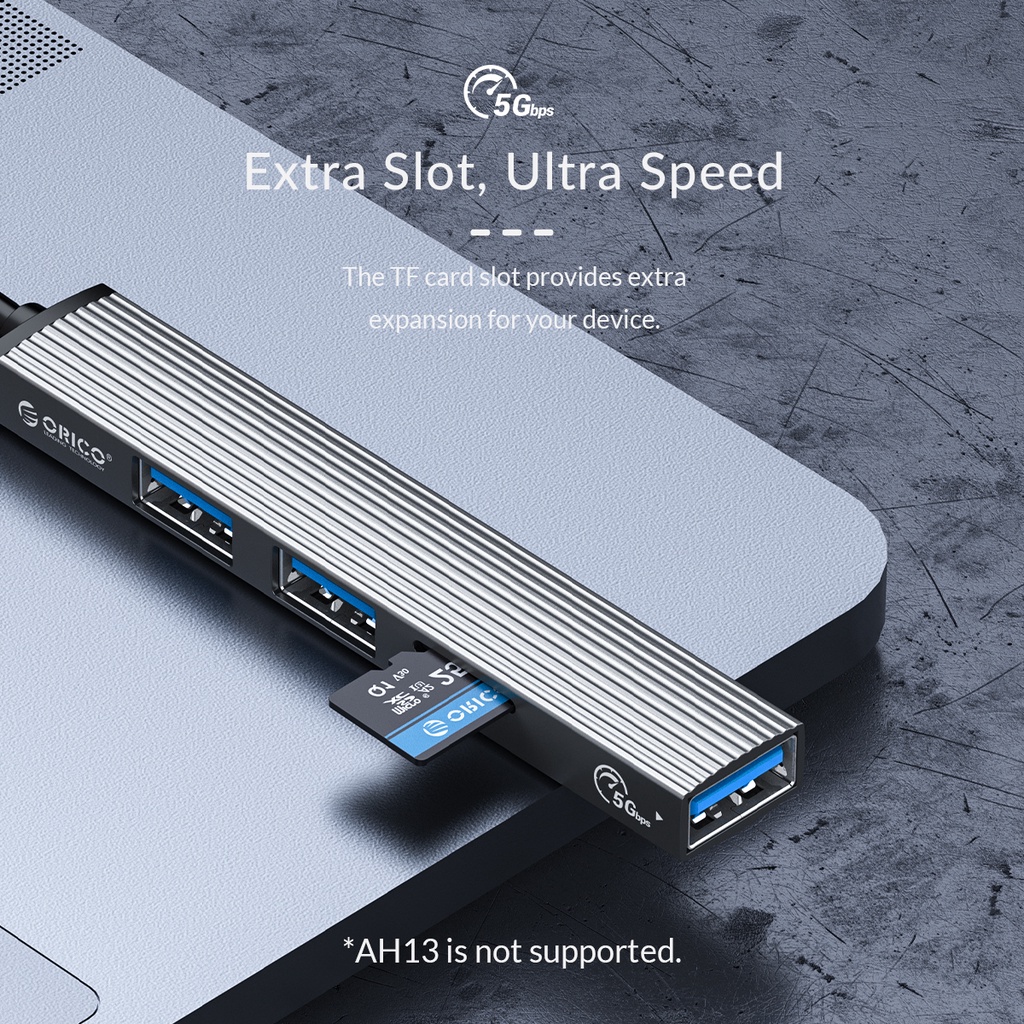 Giới thiệu Bộ Chia USB Orico Type C ra 4 cổng USB 3.0 & USB 2.0/ TF AH-12F-GY-BP - Hàng Chính Hãng