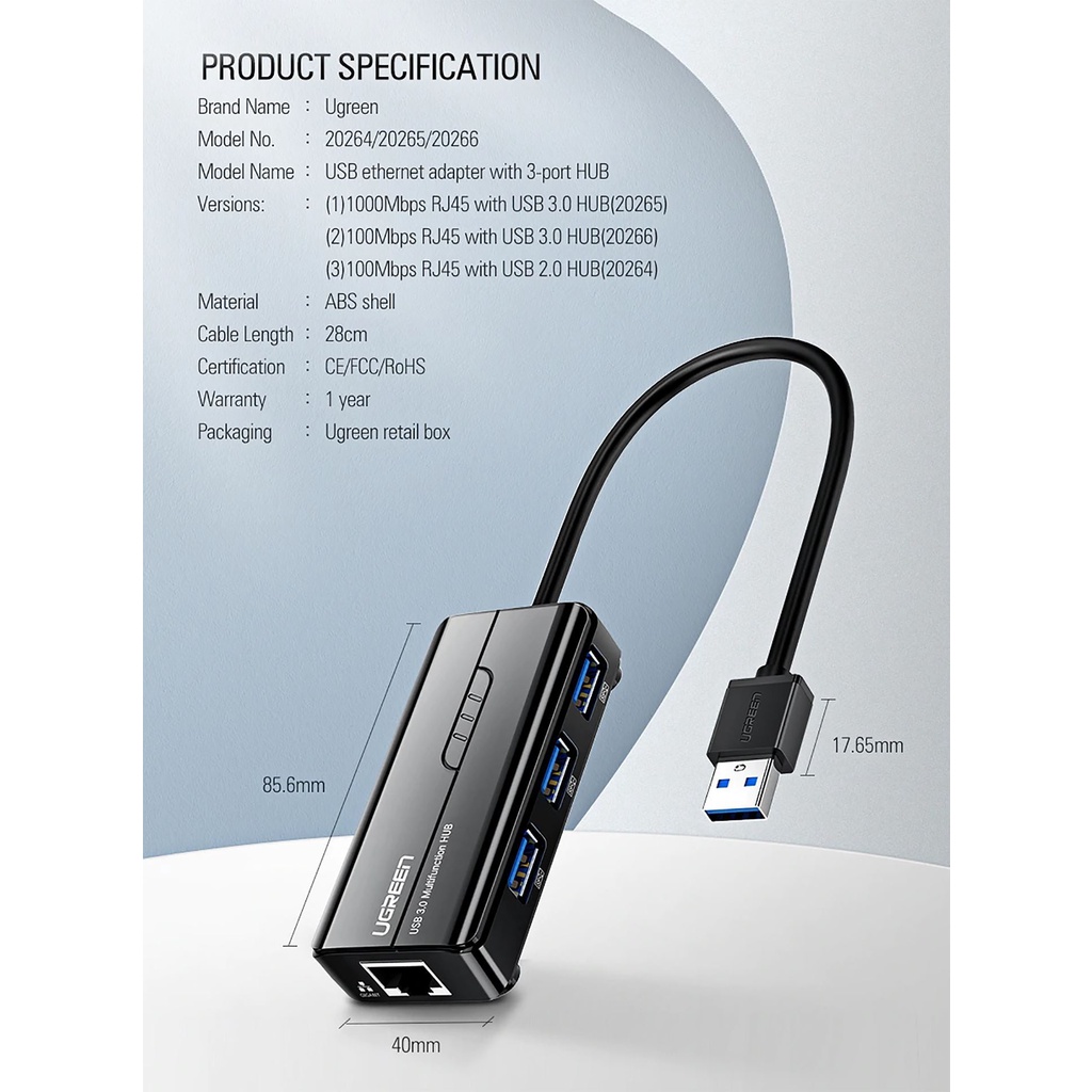 Bộ Chia USB RA 3 Cổng USB & LAN Cao Cấp, UGREEN CR103 Chính Hãng, Tốc độ 1000MbpsMÔ TẢ SẢN PHẨM: