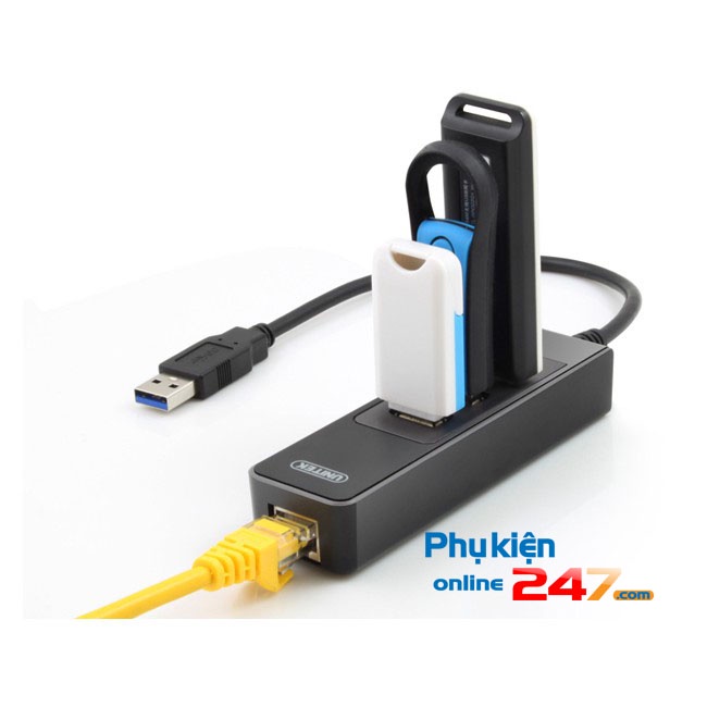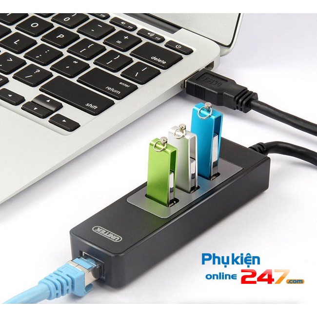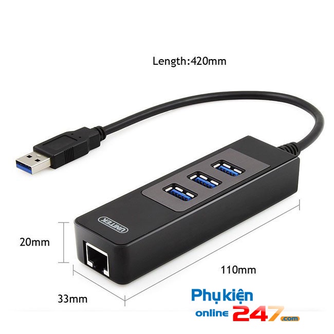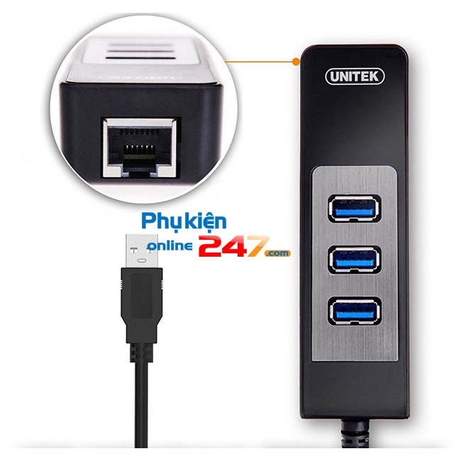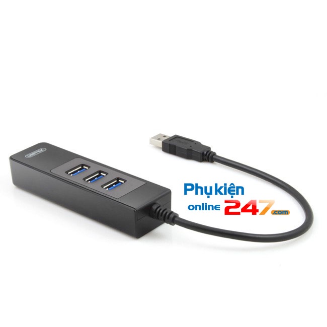 Bộ chia Bộ chia USB tốc độ cao tích hợp đầu chuyển USB sang cổng mạng LAN RJ45 sử dụng cổng giao tiếp USB tiêu chuẩn tốc độ cao (USB full size 3.0) và bộ vi xử lý lõi kép siêu thông minh cho phép chuyển đổi thành 3 cổng USB 3.0 và 1 cổng mạng LAN tốc độ gigabit(LAN RJ-45) đảm bảo kết nối và truyền tải dữ liệu tốc độ cao tương thích với hầu hết các thiết bị và các hệ điều hành hiện nay .
