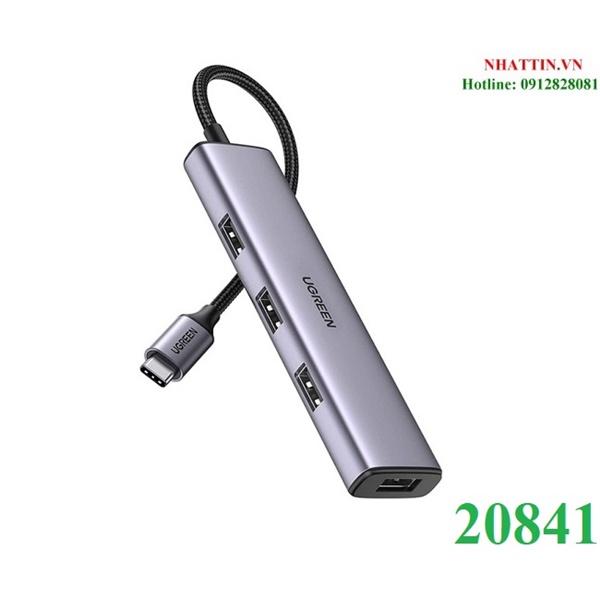 Bộ chia USB Type-C ra 4 cổng USB 3.0 vỏ nhôm Ugreen 20841 cao cấp