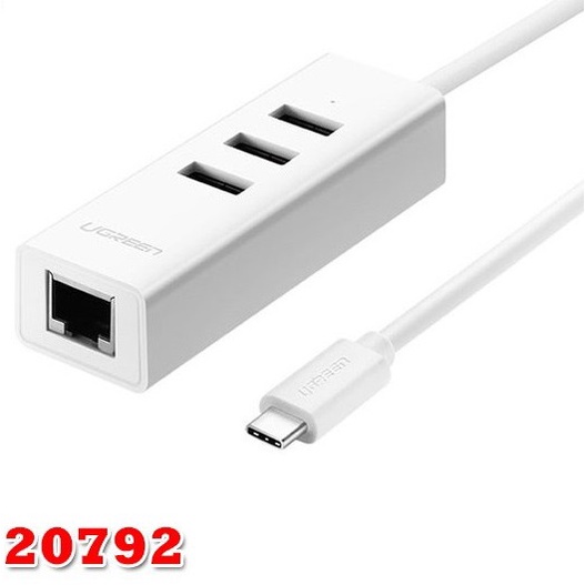 Bộ chia USB Type C sang Hub USB 2.0 3 Cổng và 1 cổng Lan Ugreen 20792