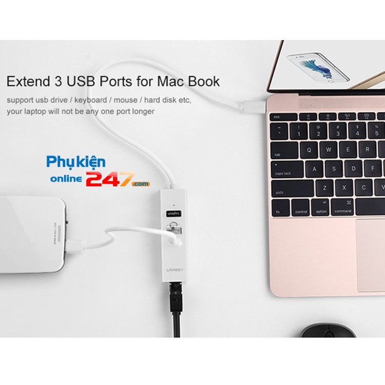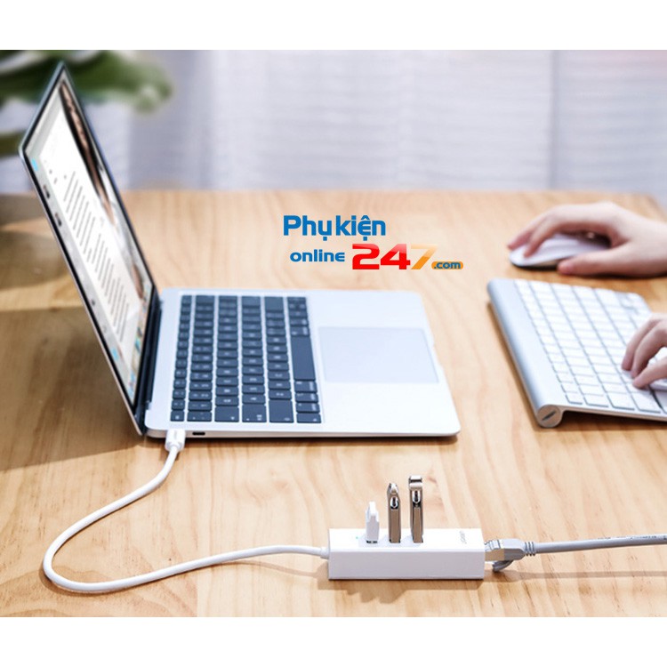 💥 Bộ chia USB type C tích hợp cổng mạng LAN giúp Macbook của bạn có thể kết nối thêm với các thiết bị có cổng USB như phím, chuột...ngoài ra còn có thể kết nối với mạng dây tốc độ 10/100Mbps thông qua cổng mạng Lan