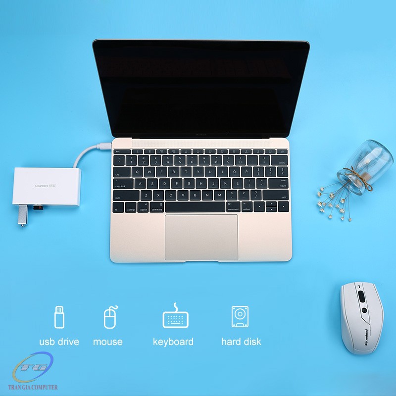 Bộ chia USB Type-C to USB 4 cổng 3.0 Ugreen 30278USB Type C Ugreen 30278 là bộ chia USB 4 cổng chuẩn USB 3.0 kết nối Macbook 12inch, Google Chormebook thông qua cổng USB TYPE C tốc độ cao.