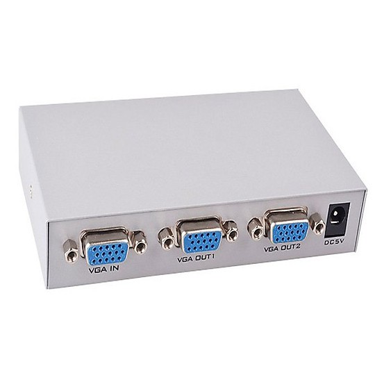 Bộ chia VGA 2 cổng được sử dụng dùng để chia tín hiệu từ 1 máy tính ra 2 màn hình khác nhau nhưng vẫn đảm bảo được độ phân giải như nhau mặc dù chia ra 2 màn hình và máy chiếu.