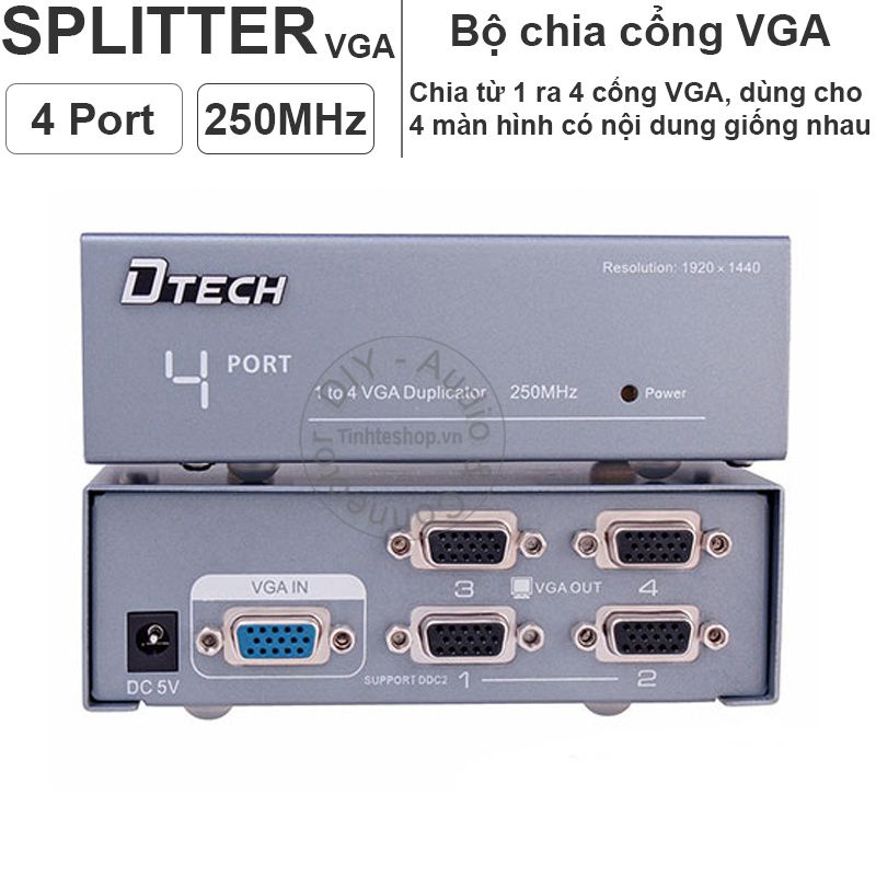 BỘ CHIA VGA 1 to 2 Dtech DT-7252, 1 TO 4 DTECH DT-7254- Đầu VGA vào: 1 kênh VGA 15DHF