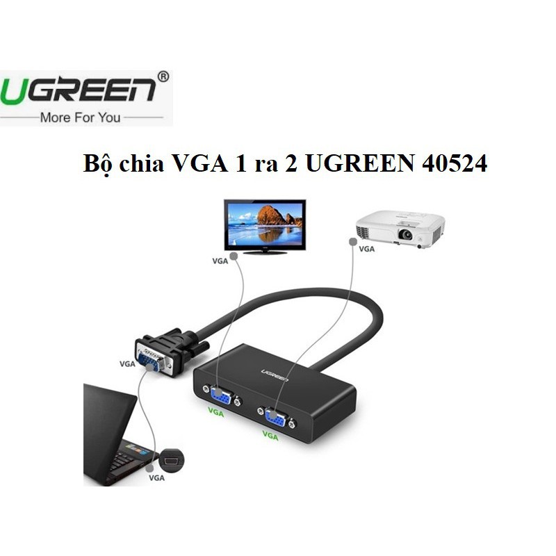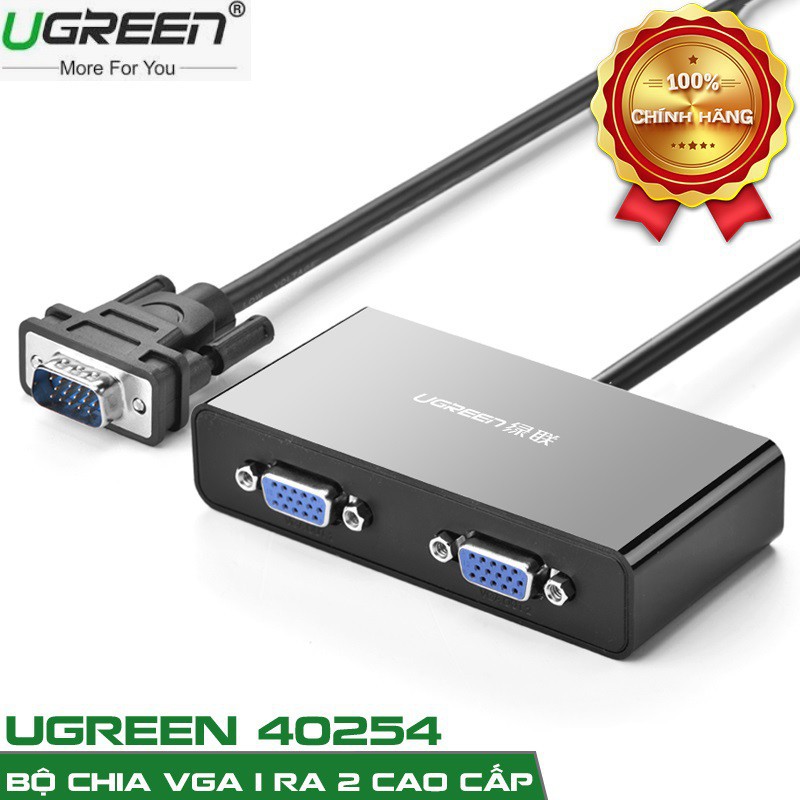 - Cáp chia cổng VGA 1 ra 2 chính hãng Ugreen 40254 cho phép bạn đồng thời phân phối tín hiệu video VGA từ một nguồn duy nhất để 2 VGA màn hình, máy chiếu hoặc màn hình, cung cấp hình ảnh sống động chất lượng. Thích hợp trình chiếu cho đào tạo, triển lãm, hội nghị, vv với giá thành rẻ , hợp lý .