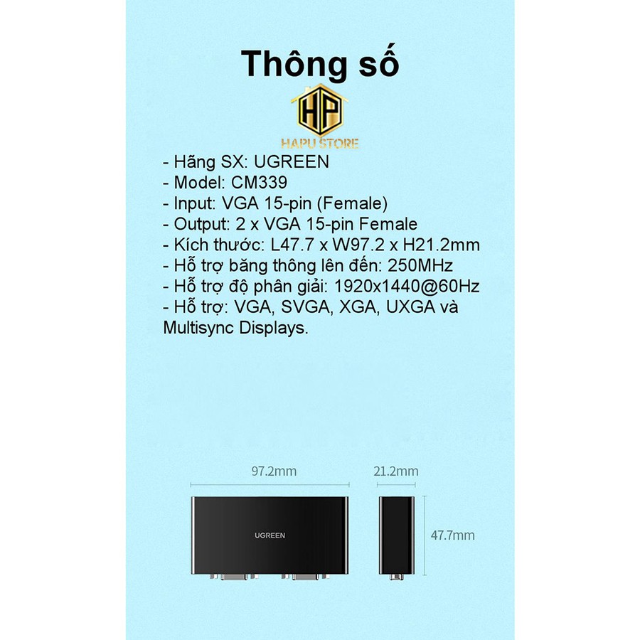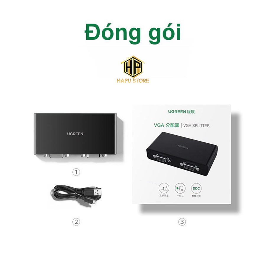 Bộ chia VGA 1 ra 2 Ugreen 80190 chính hãng - Bộ chia tín hiệu tốc độ cao - Hapustore