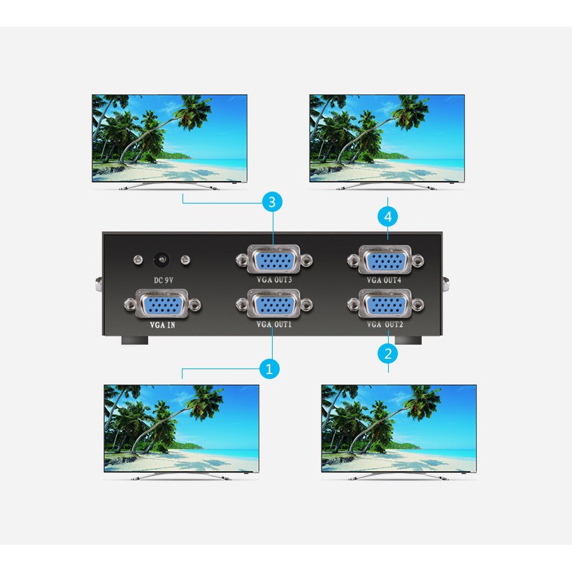Đầu VGA vào: 1 kênh VGA 15DHFĐầu VGA ra: 4 chiều VGA 15HDF giao diện đầu ra