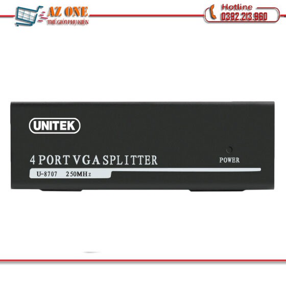 BỘ CHIA VGA 1 RA 4 Unitek U-8707Bô chia VGA SPlitter 1 ra 4 với băng thông 250Mhz độ nét cao. Dùng để chia một tín hiệu đầu vào VGA và cấp ra 4 đầu ra VGA, chia từ một CPU ra 4 màn hì