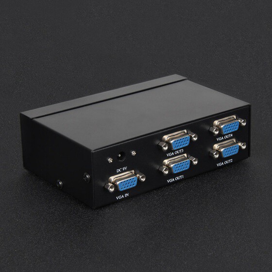 Bộ chia VGA 1 ra 4 chuyển tín hiệu từ 1 CPU / Máy tính / Laptop ra 4 cổng VGA cho LCD, TV, Máy chiế với băng thông rộng lên tới 250Mhz, độ phân giải màn hình Full HD 1920*1440 hỗ trợ tín hiệu đường truyền 20m - 40m
