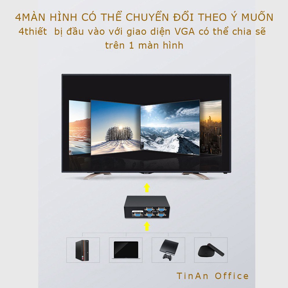 Bộ Chia VGA 4 Cổng, Lấy 4 VGA Của 4 Máy Tính, PC Video Và Hiển Thị Trên 1 Máy Chiếu, Màn Hình TV