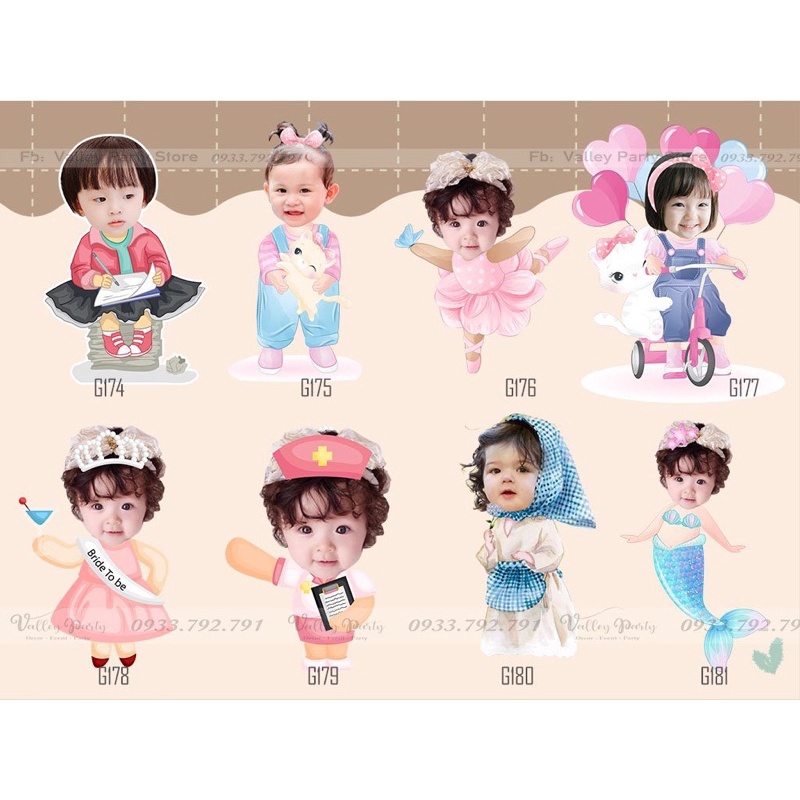 Mẹ gửi cho shop nhiều ảnh để shop chọn ra ảnh phù hợp nhé, gửi ảnh chụp cận mặt bé, biểu cảm đáng yêu thì làm sẽ đẹp hơn ạ