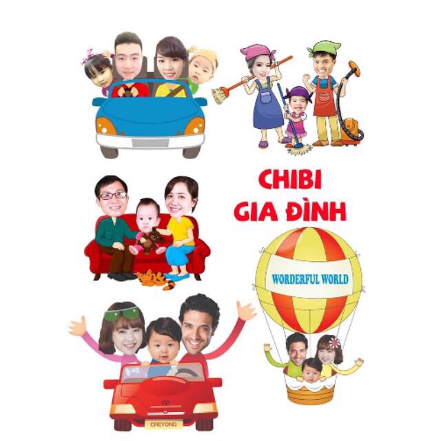 Chibi gia đình để bàn trang trí cao 40cm 3-4 ngườiKhách đặt hình gửi hình qua z-a-l-o cho shop, chế độ Hd để hình được rõ nét nhé.