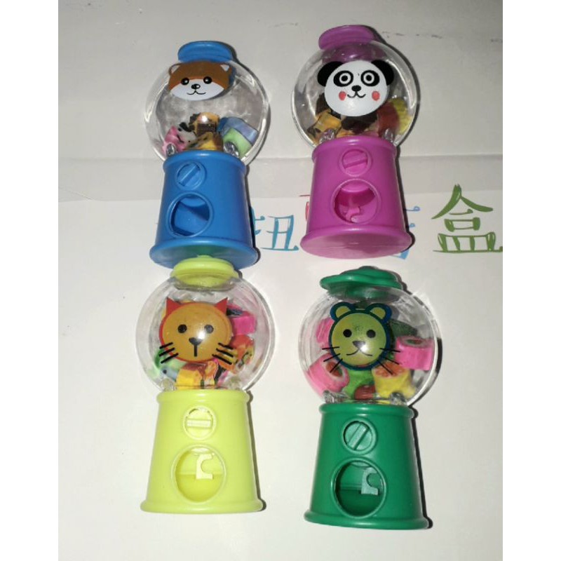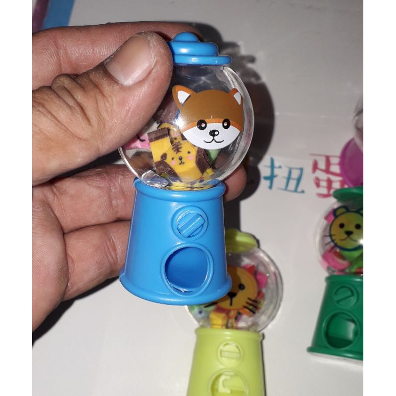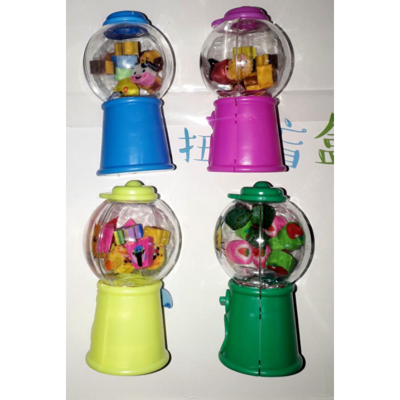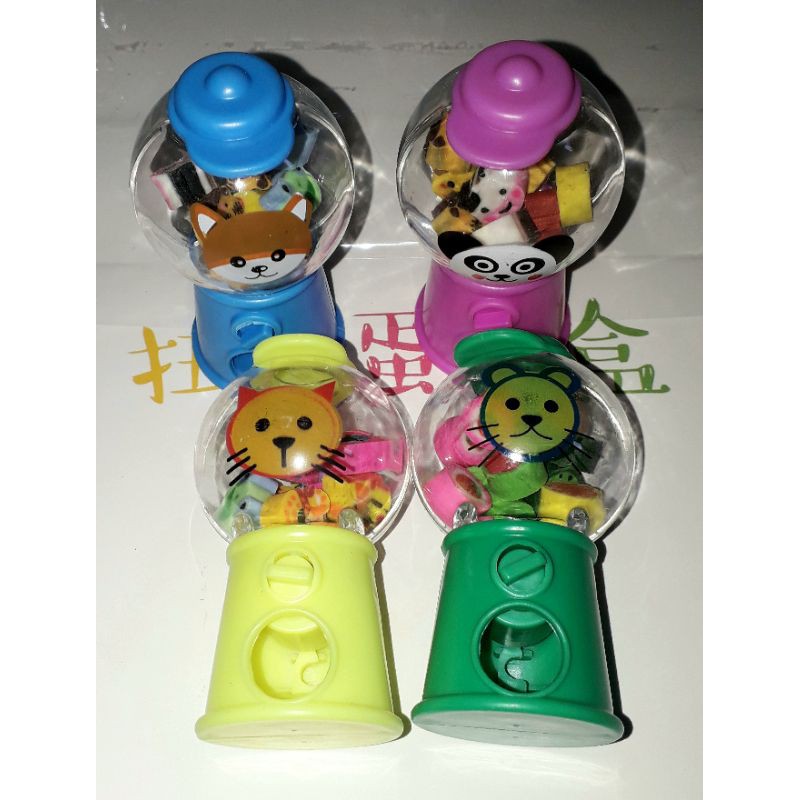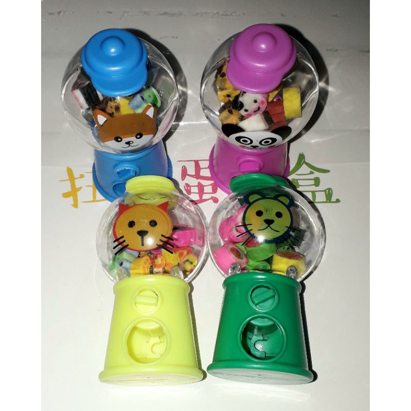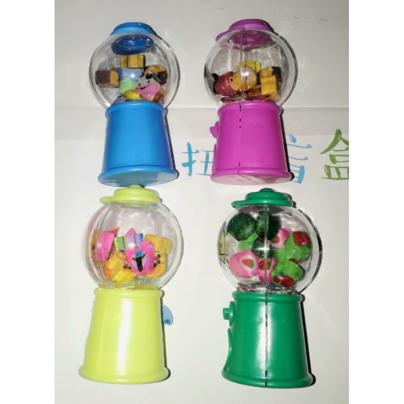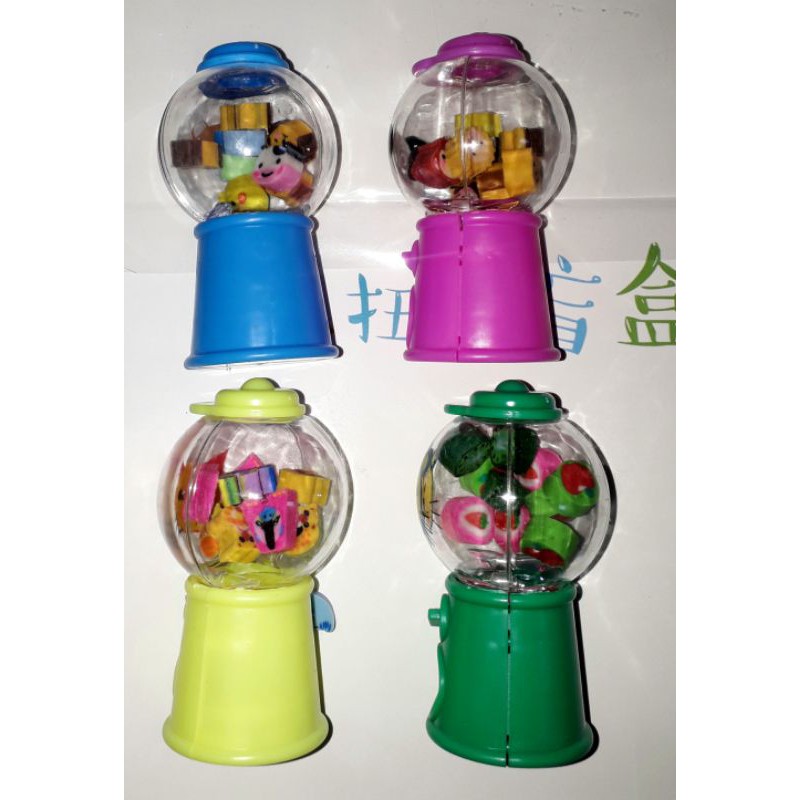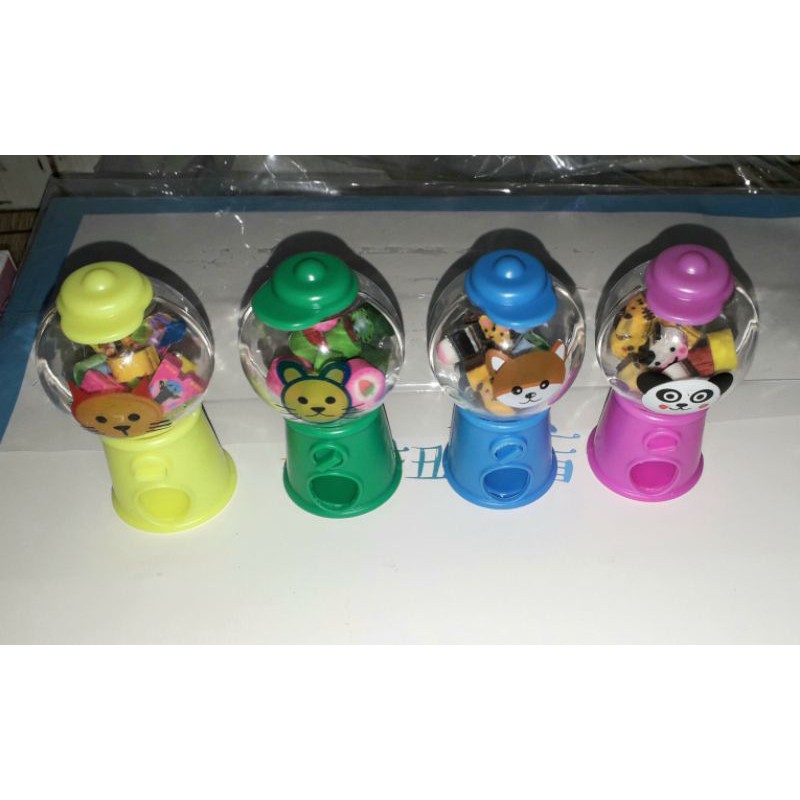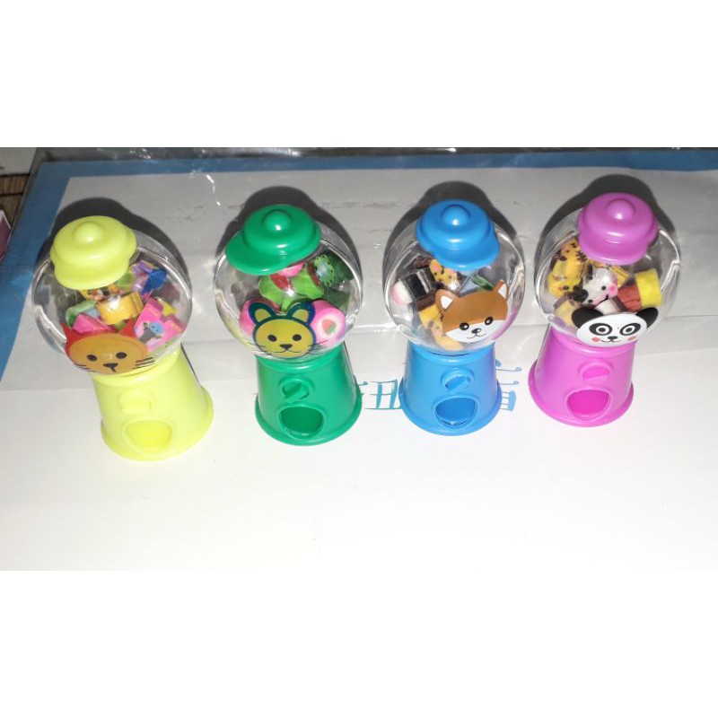 Sản phẩm là Một chiếc máy quay gôm_tẩy mini bằng nhựa rất dể thương như hình.Sản phẩm có 4 màu, và mỗi sản phẩm có nhiều viên gôm ngộ nghĩnh bên trong.