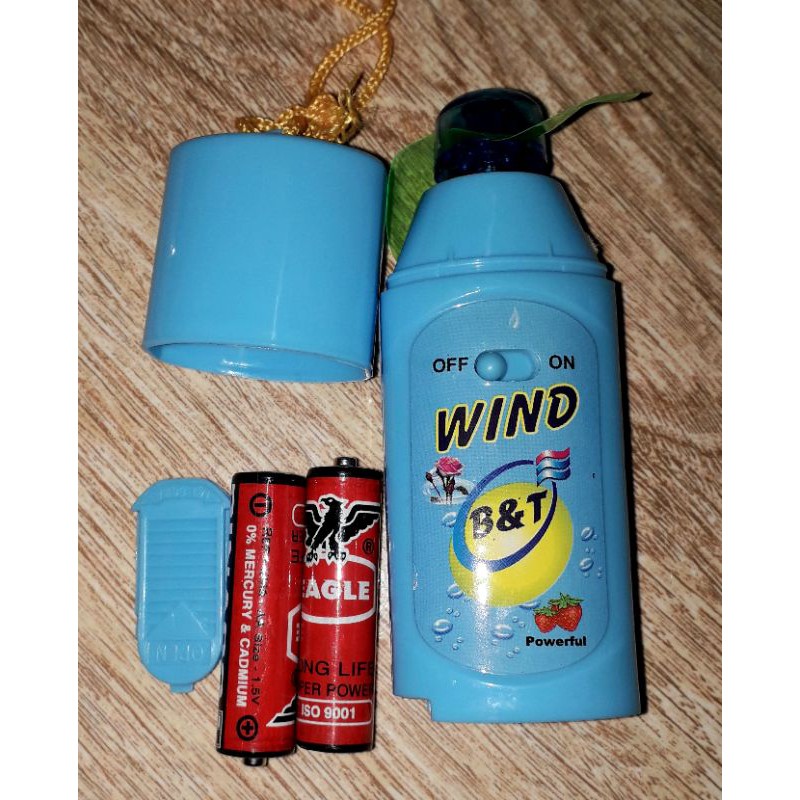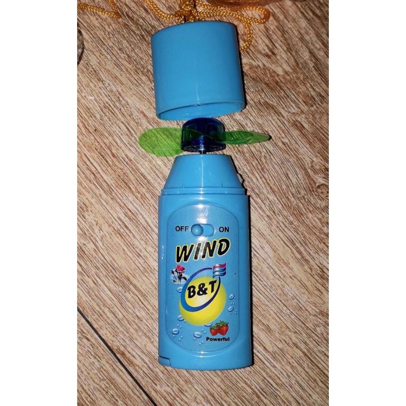 Một chiếc quạt mini cầm tay chạy pin bằng nhựa_tặng kèm pin