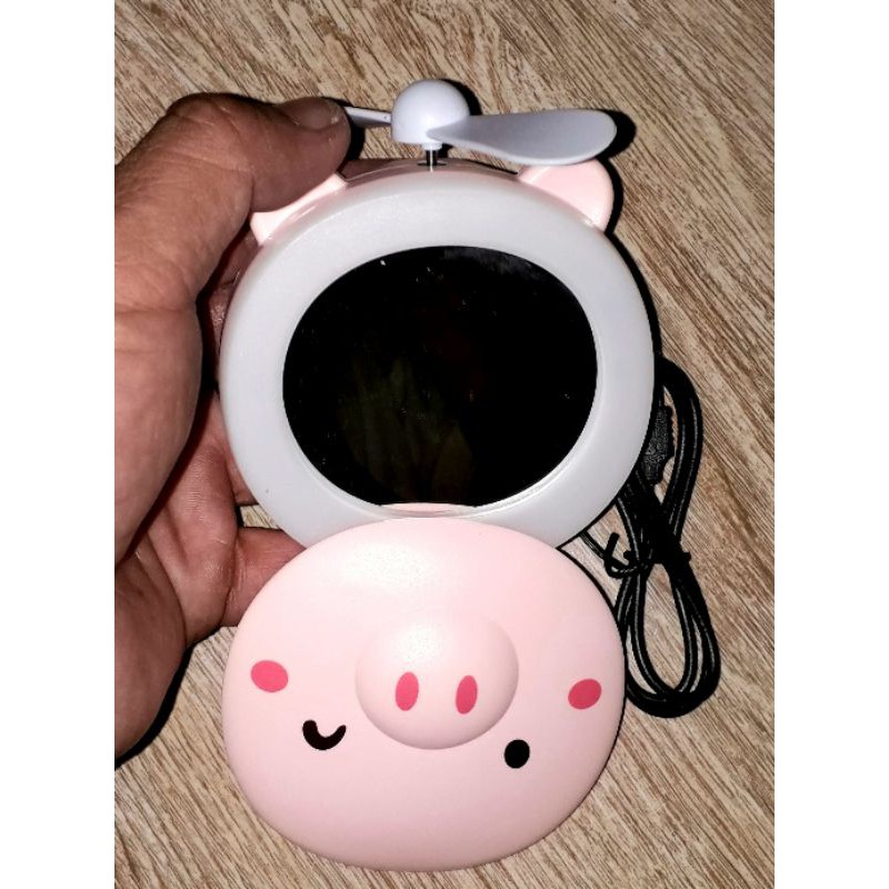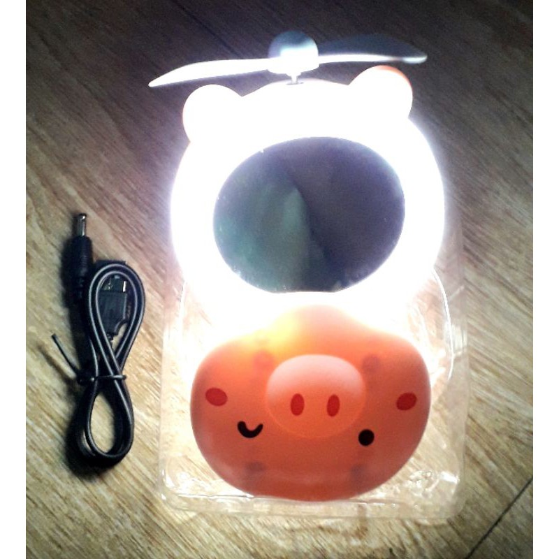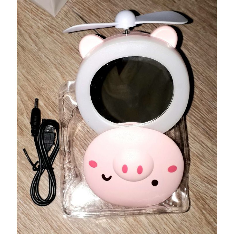 Sản phẩm là Một chiếc quạt mini để bàn pin sạc 3 trong 1 rất đẹp như hình.Sản phẩm có kèm cáp sạc, có kèm pin sạc, có công tắc mở đèn và có gương nữa ạ.
