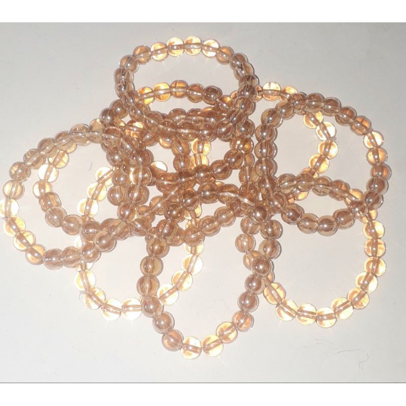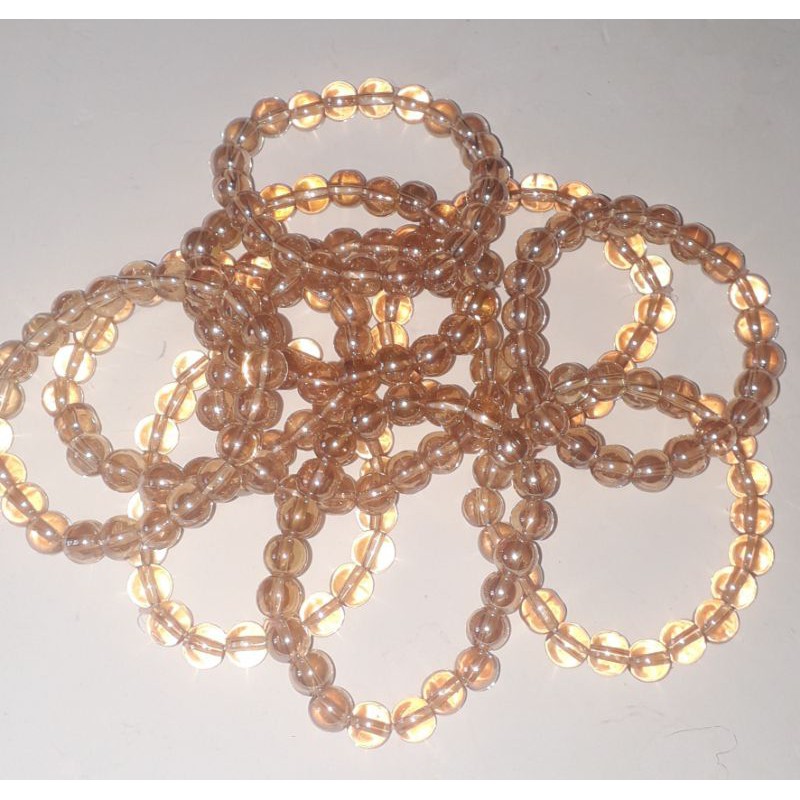 Một chiếc vòng tay có 22 hạt bi tròn loại 8 ly thủy tinh màu vàng nước trà rất đẹp