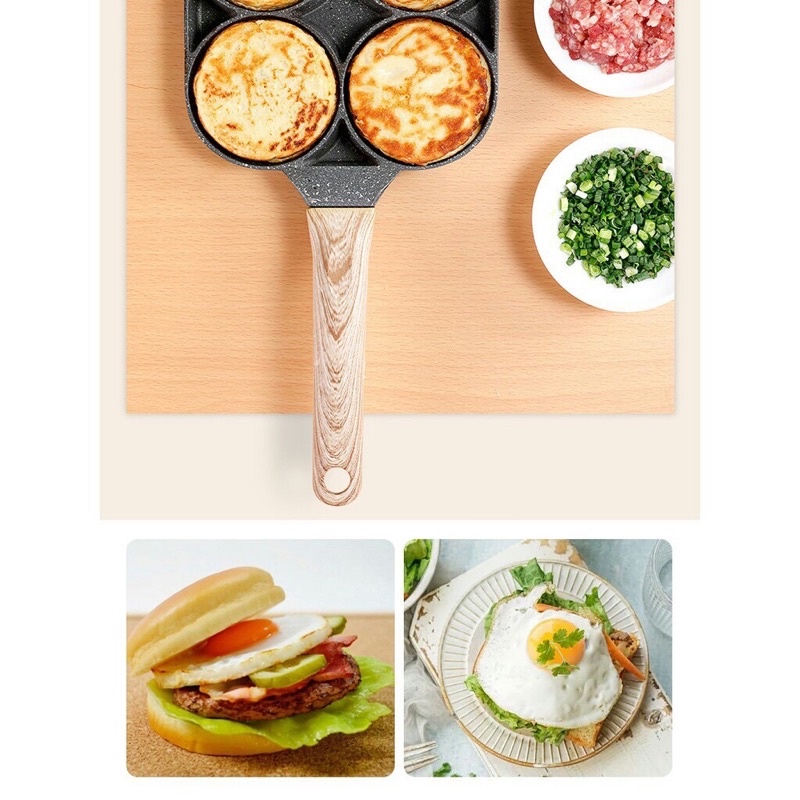 Giới thiệu Chiên Rán Trứng Làm Bánh 4 Ngăn 4 Lỗ Chống Dính- Chống Dính Tay Cầm Gỗ