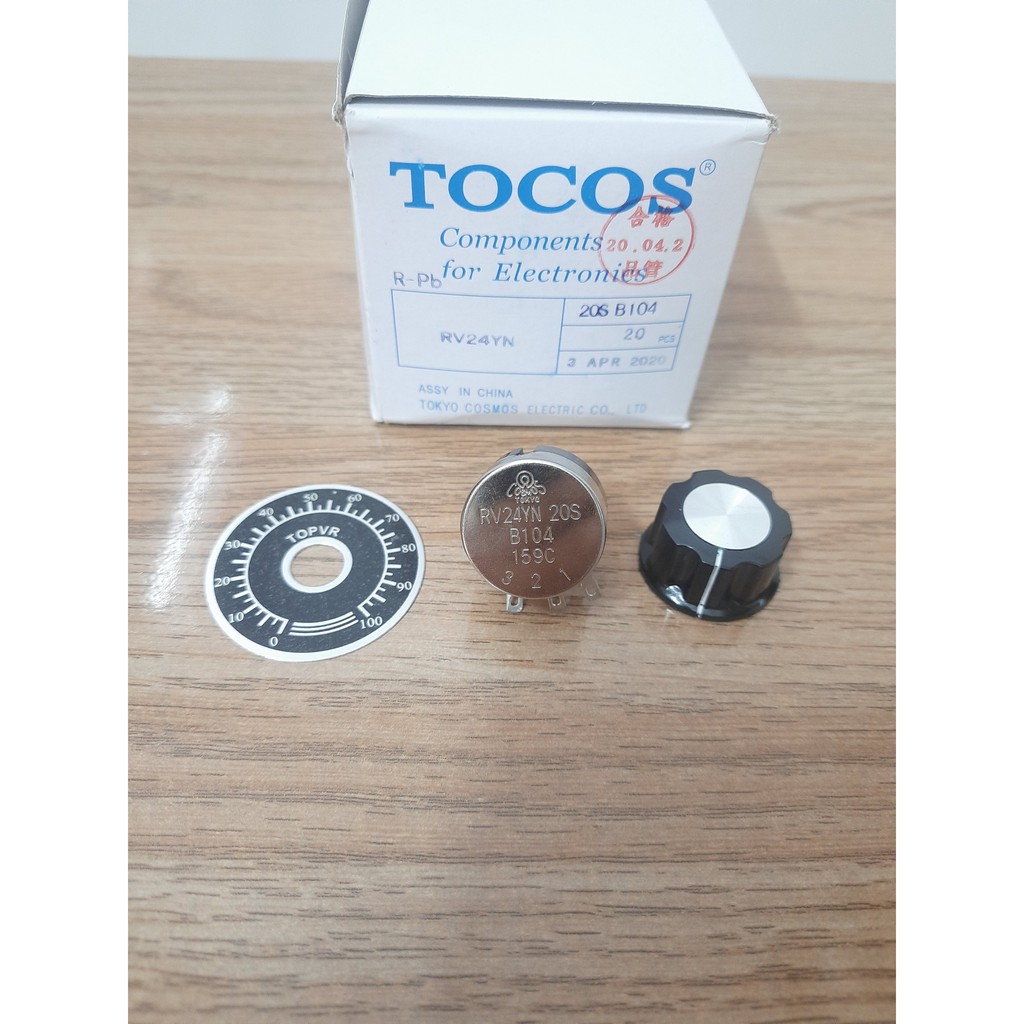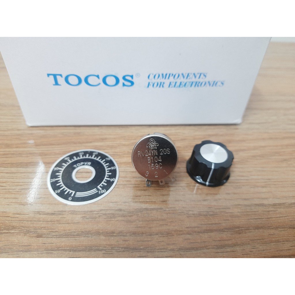 Giới thiệu Chiết áp TOCOS 100K RV24YN20S B104 + NÚM VẶN VẠCH CHIA