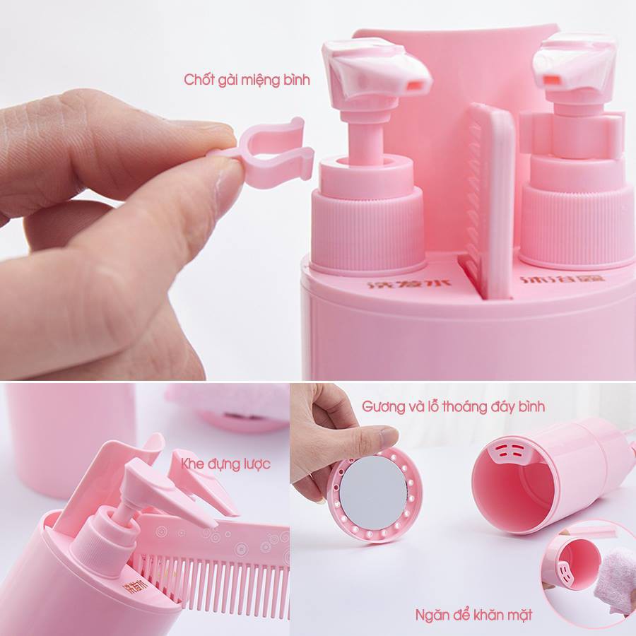 Giới thiệu [Mã 254LIFESALE giảm 100% đơn 50K] Bộ chiết mỹ phẩm dầu gội đi du lịch đa năng kèm lược gương cốc nhỏ gọn B1