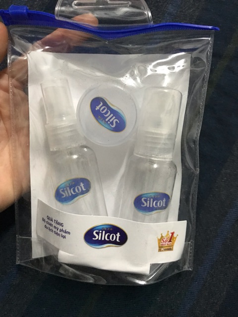 Bộ chiết mỹ phẩm du lịch Silcot- 1 bộ gồm : túi xách zip nhỏ