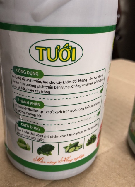 • Pha nắp chai 20ml cho 1 bình 16 tới 18 lít nước phun hoặc tưới gốc cho cây trồng