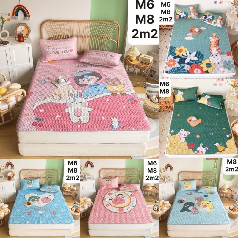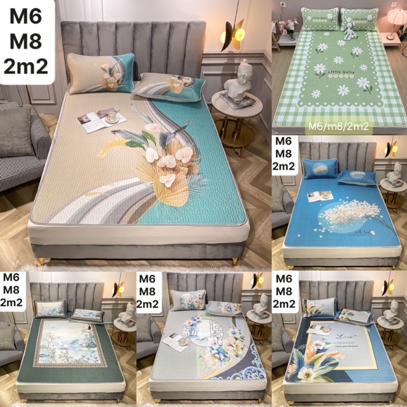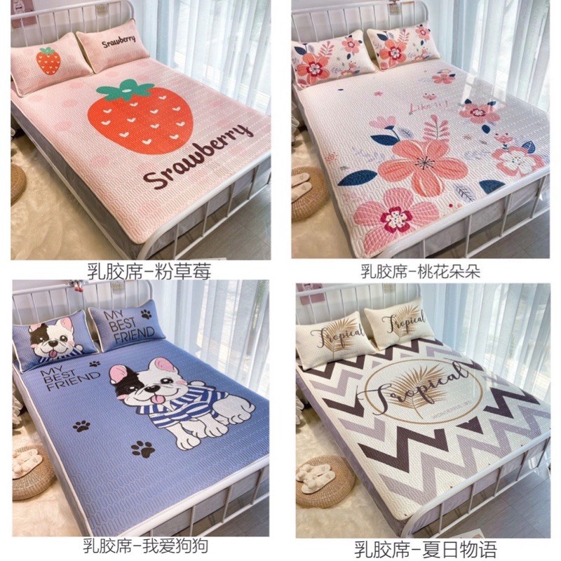 Bộ CHIẾU CAO SU 5D / CHIẾU ĐIỀU HOÀ kèm 2 vỏ gối nằm MẪU MỚI NHẤT ->được chọn mẫu