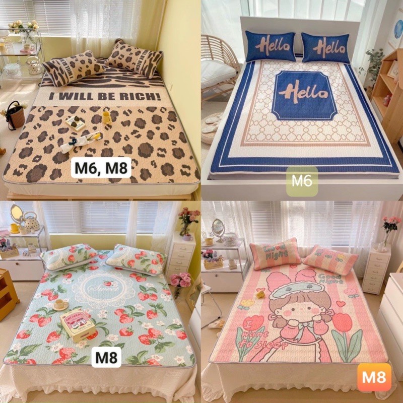 Bộ Sp CHIẾU CAO SU 5D /CHIẾU ĐIỀU HOÀ SIÊU CẤP bao gồm :✅1 Chiếu (thảm) trải có chun cài 4 góc (3 lớp :1 lớp chính in hoa văn sắc nét 5D đa dạng mẫu mã- Mặt vải THUN LẠNH cao cấp / lớp giữa Đệm lớp mút cao su tạo độ êm +đàn hồi / lớp cuối lót chống trượt + chun cài 4 góc cố định đệm)