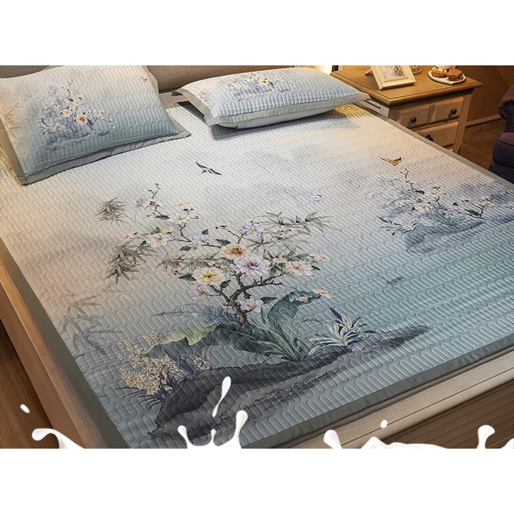 Chiếu Cao Su Hoạ Tiết 5D CHO Các gia đình Mẫu HOA LÁ XANH trungvbhp_shopalot2👉MÁT LẠNH, TẶNG KÈM 2 VỎ GỐI 🌳🌳🌳