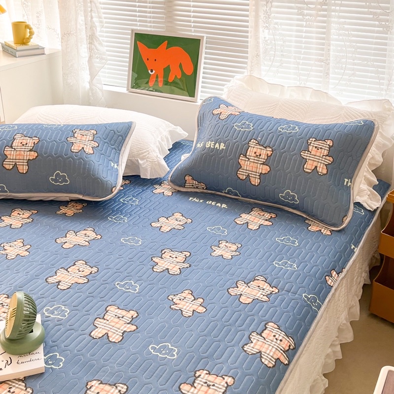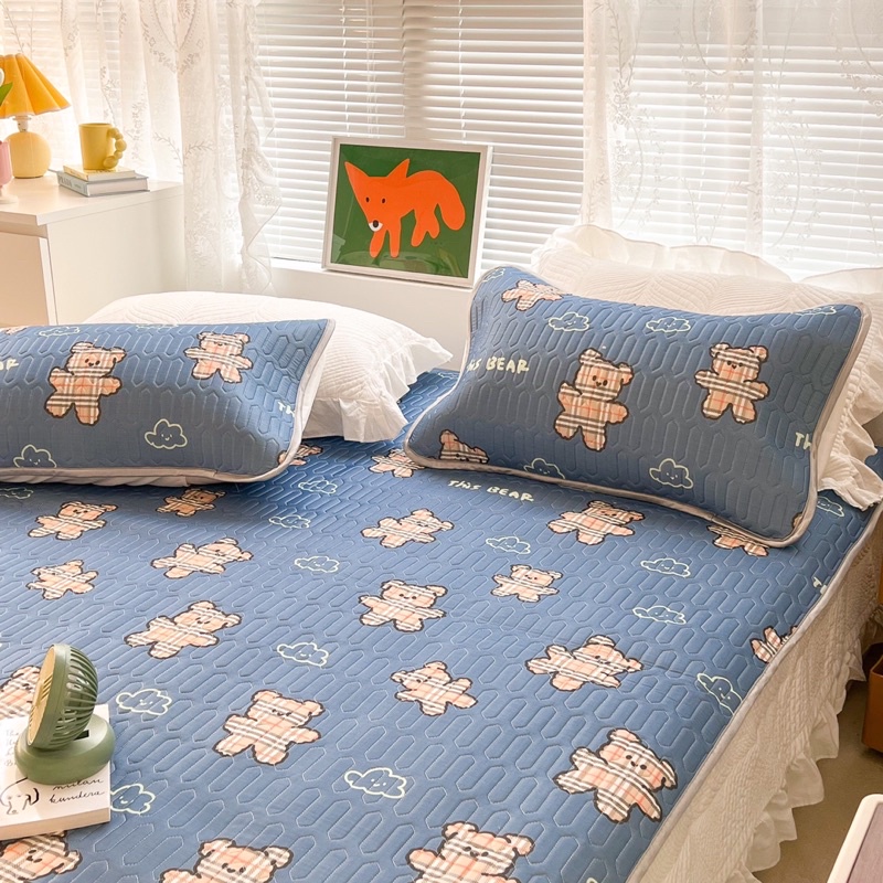 Chiếu cao su non LATEX MARK CROSS 2022 mẫu gấu kẻ xanh