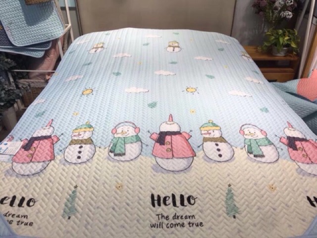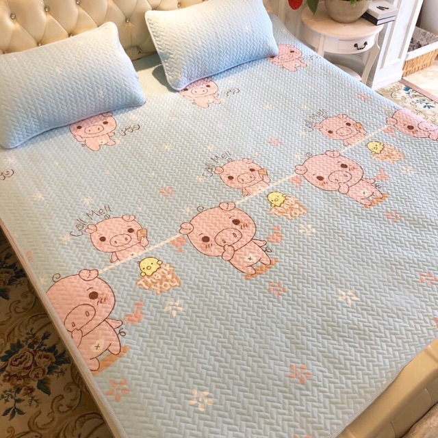 🍒Thiết kế hiện đại: mặt trên được làm bằng vải Tencel, mặt dưới là lớp chống trượt, 4 góc có đai thun cố định để chiếu không bị xê dịch trên mặt đệm