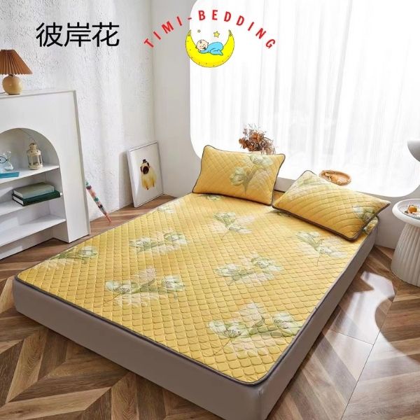 - Lớp lót: Vải chống thấm, kết hợp các hạt cao su bán đệm chống xê dịch (có dây chun để cố định vào nệm).