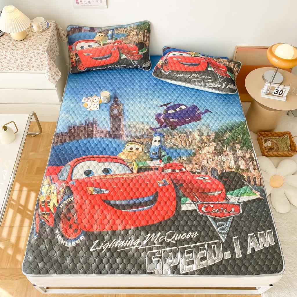 Nhà cửa & Đời sống > Chăn ga gối nệm > Chiếu điều hòa || Chiếu điều hòa cao su non 5D Tencel vân tròn hình ngộ nghĩnh Chiếu cao su mát tặng kèm 2 vỏ gối cùng màuCòn hàng