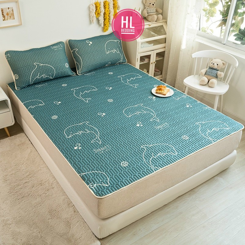 Nhà cửa & Đời sống > Chăn ga gối nệm > Chiếu điều hòa || Chiếu điều hòa cao su non 5D Cá heo xanh HL Bedding vải lụa Tencel mát cao su non Latex mềm mịn đủ kích thước m6/m8/2m2Còn hàng