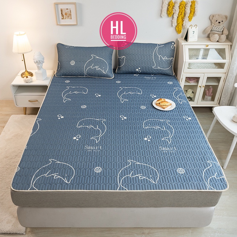 Nhà cửa & Đời sống > Chăn ga gối nệm > Chiếu điều hòa || Chiếu điều hòa cao su non 5D Cá heo xám HL Bedding vải lụa Tencel mát cao su non Latex mềm mịn đủ kích thước m6/m8/2m2Còn hàng
