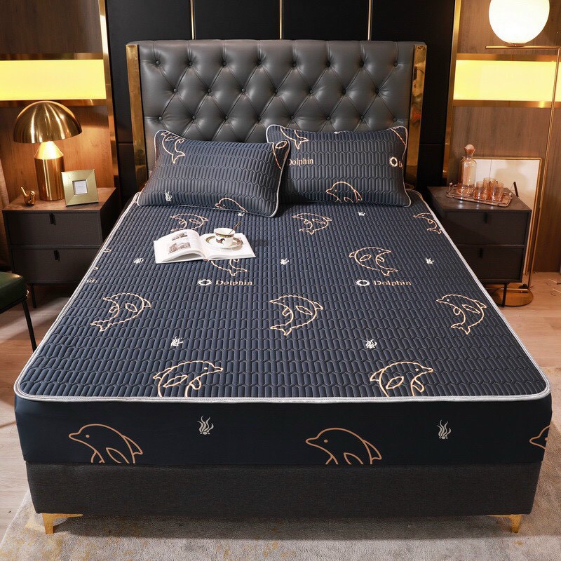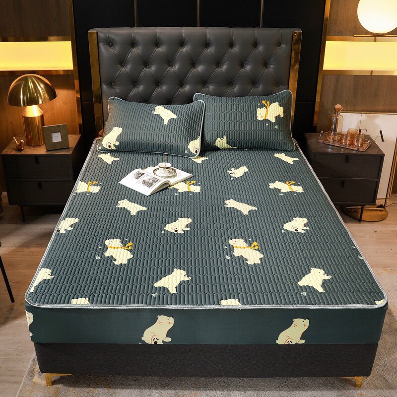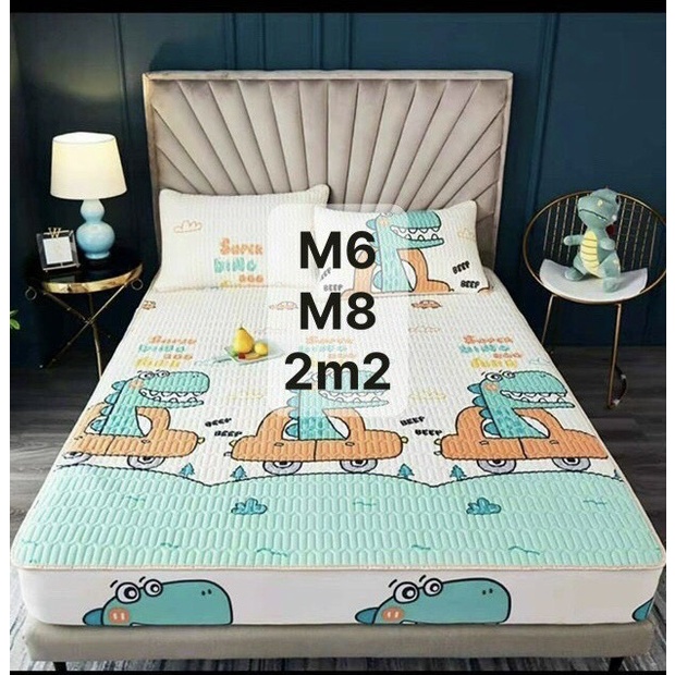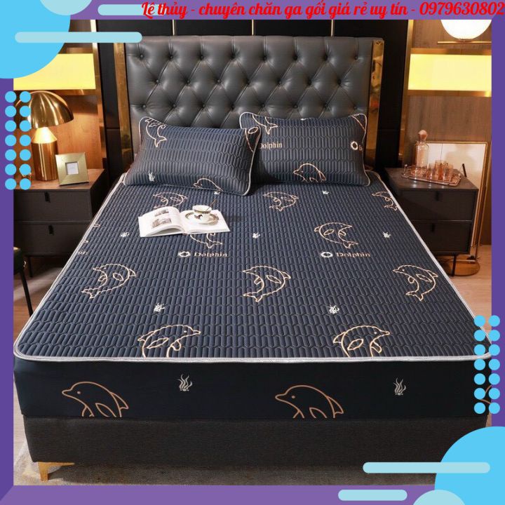 Chiếu điều hòa cao su non latex, chiếu cao su non bo chun bọc đệm tặng kèm 2 vỏ gối cùng mầu