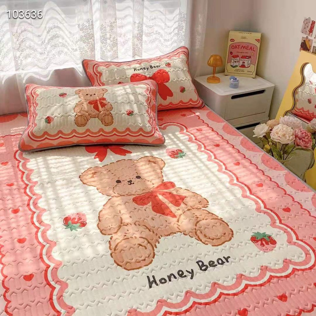 Chiếu Điều Hoà Cao Su Non Latex 5D Gấu Hồng