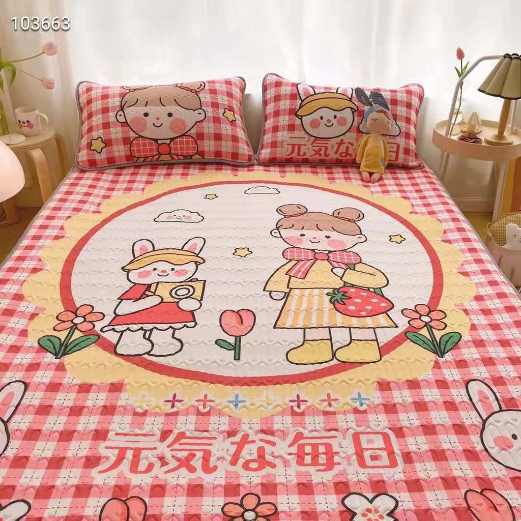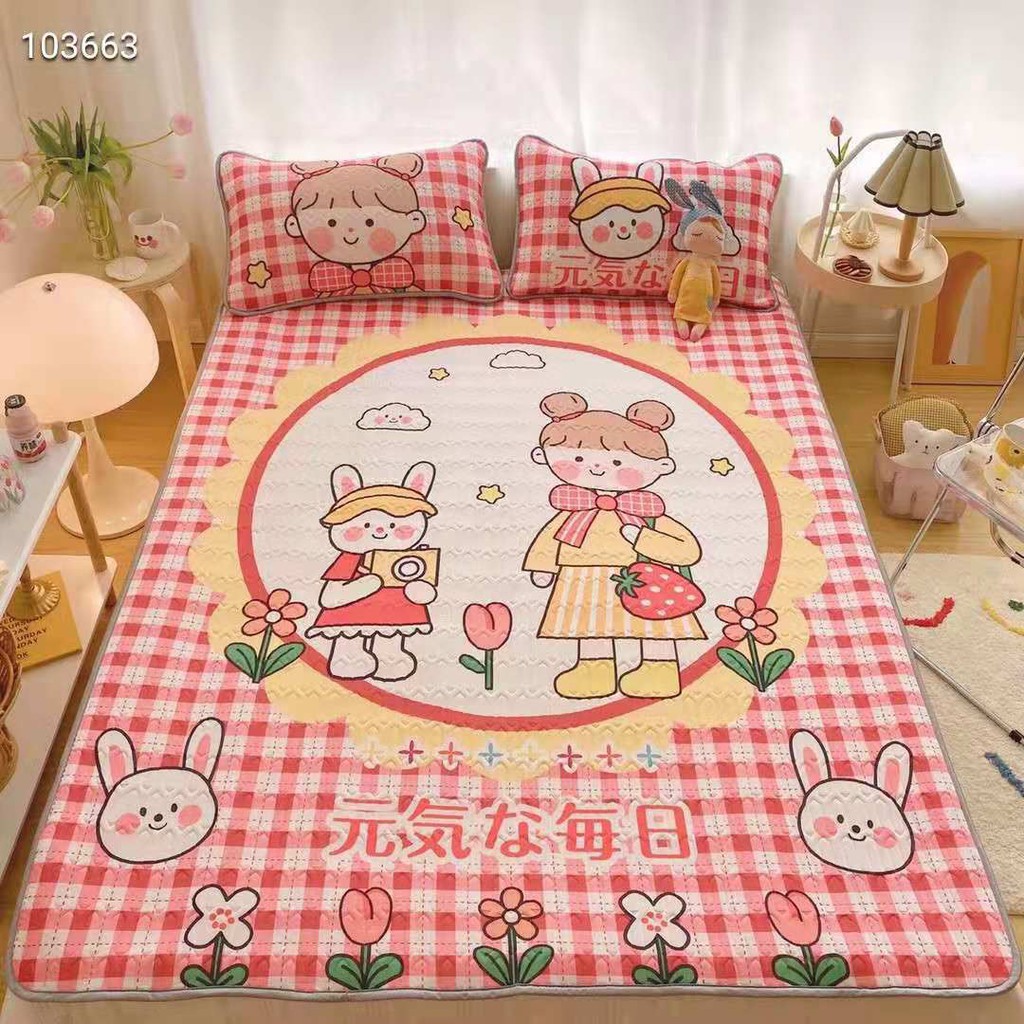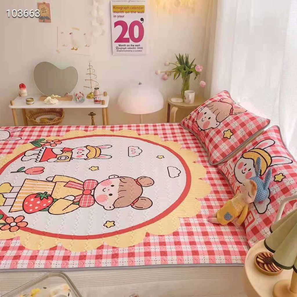 Giới thiệu Chiếu Điều Hoà Cao Su Non Latex 5D Cô Bé Thỏ Kẻ