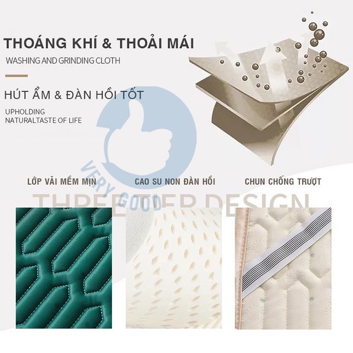 ✔ Cuối cùng là lớp vải chống thấm, kết hợp các hạt cao su bám đệm chống xô dịch
