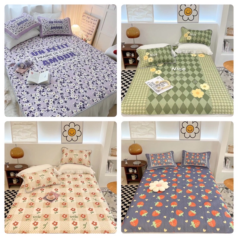 ✔ Cuối cùng là lớp vải chống thấm, kết hợp các hạt cao su bám đệm chống xô dịch . Kèm 4 góc có dây chun cố định chắc chắn.
