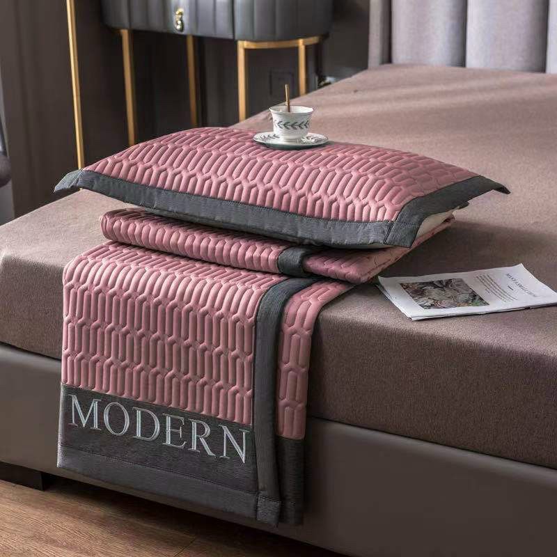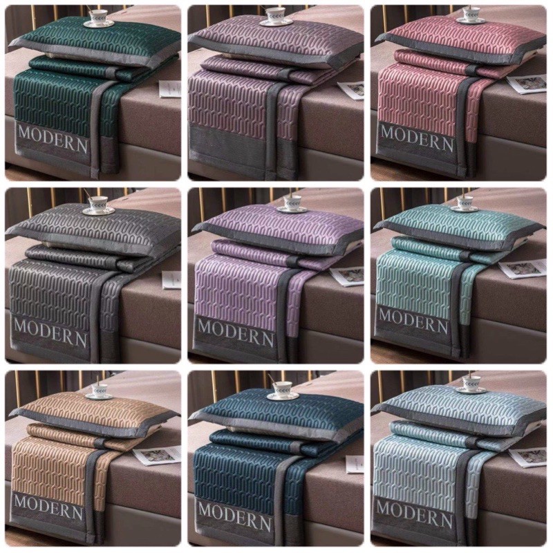 Chiếu điều hoà cao su non một màu thêu Modern 2021✅Thiết kế độc-lạ với tổng thể được dựa trên nền đơn sắc mix lụa dệt dày dặn..