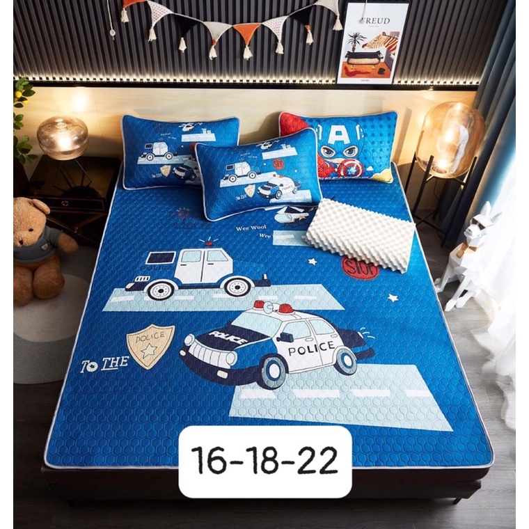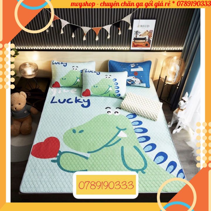Chiếu điều hoà cao su non 5D, chiếu cao su non trần trám hoạt hình dày dặn đủ size tặng kèm 2 vỏ gối
