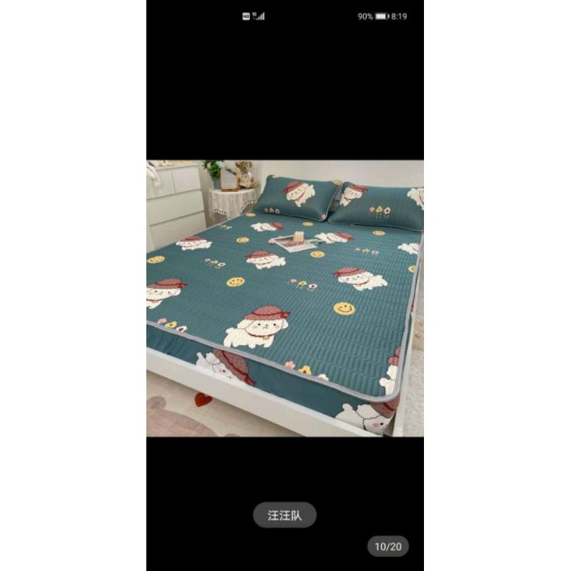 👉🏻Mặt dưới có chun cài 4 góc, 4 bề xung quanh chiếu được may tỉ mỉ với lớp vải cotton lụa dệt chắc chắn, phần dưới của chiếu được thêu cách điệu hoạ tiết "MODERN"..