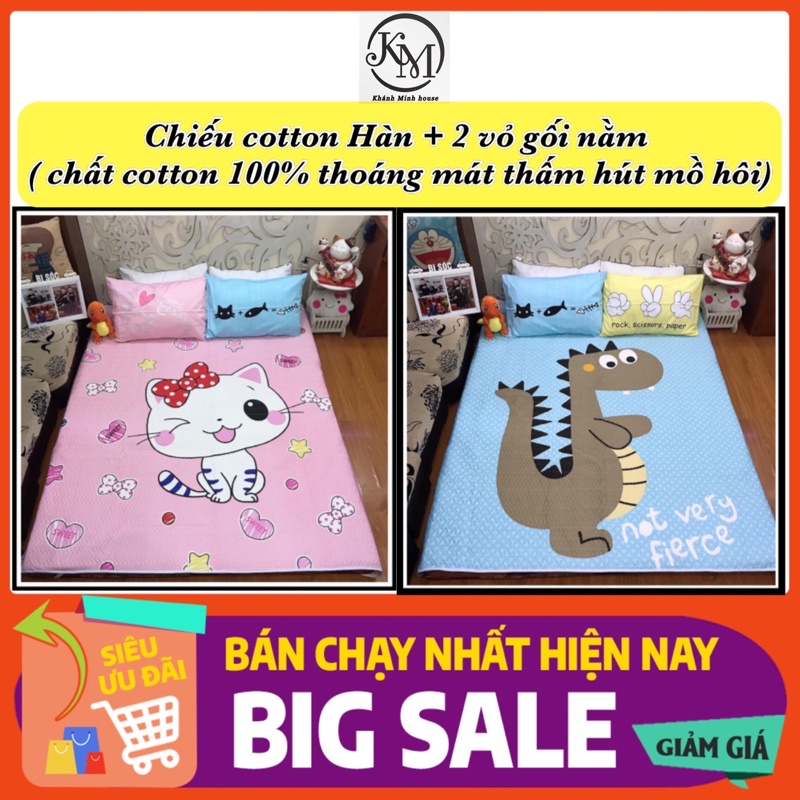 Chiếu Điều Hòa Cotton 100% Thấm Hút Mồ Hôi Tặng Kèm 2 Vỏ Gối Nằm