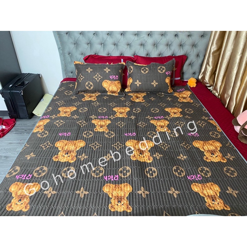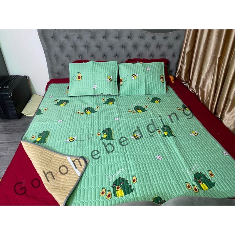 Chiếu Điều Hoà Cotton Poly Cao Cấp 3 Lớp chống trơn có chun cố định 4 góc
