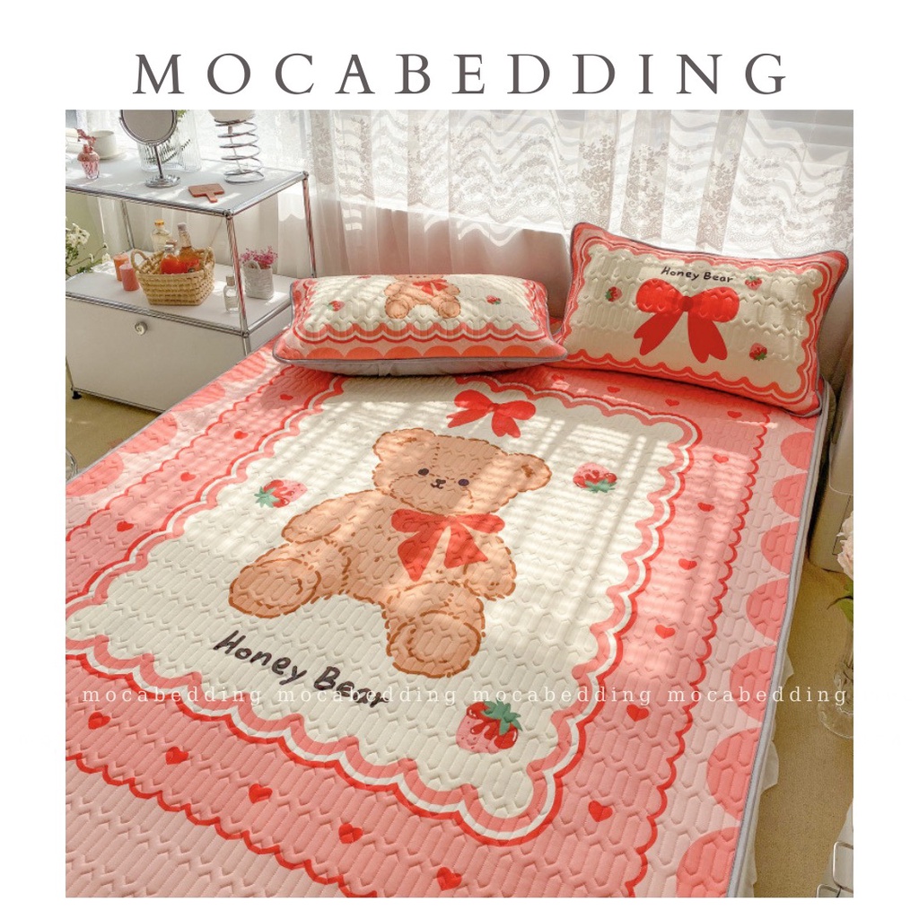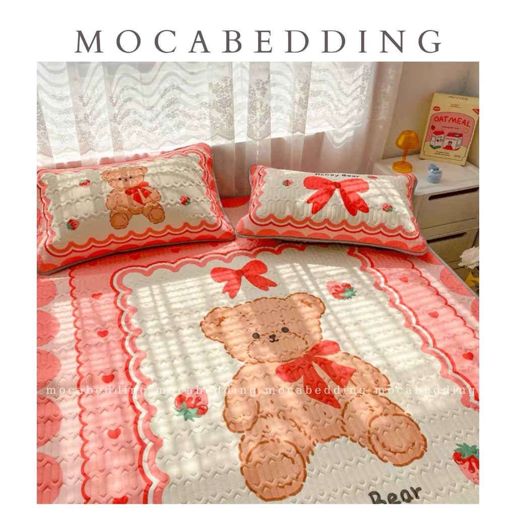 Nhà cửa & Đời sống > Chăn ga gối nệm > Chiếu điều hòa || Chiếu Điều Hòa Latex Cao Su Non 5D Có Mùi Thơm Nhẹ - Mẫu Gấu dâu hồng (Hàng loại 1)Còn hàng