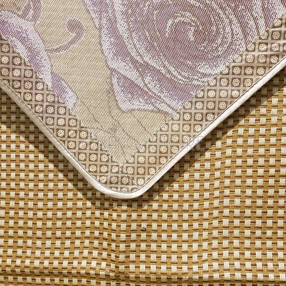 - Chiếu điều hòa sợi mây tổng hợp được thiết kế với màu sắc hài hòa (vàng nâu) cùng những đường nét hoa văn đẹp và sang trọng. Chiếu gồm 2 lớp lớp sợi mây tổng hợp ở phía trên và lớp vải ở phía dưới, trên cả 2 lớp là những lỗ thoát khí nhỏ tạo ra sự lưu thông không khí và điều hòa nhiệt độ, giúp chiếu không bị bí.
